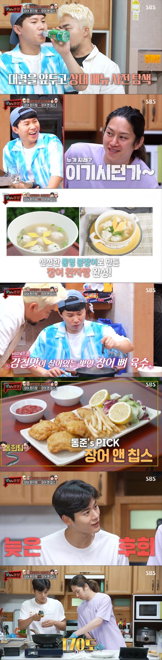 본격 요리대결 전초전에 이어 각팀이 요리를 시작했다. 양세형과 유병재팀은 장어 완자탕을, 김희철과 김동준은 장어튀김인 장어앤 칩스를 만들어볼 것이라 했다.