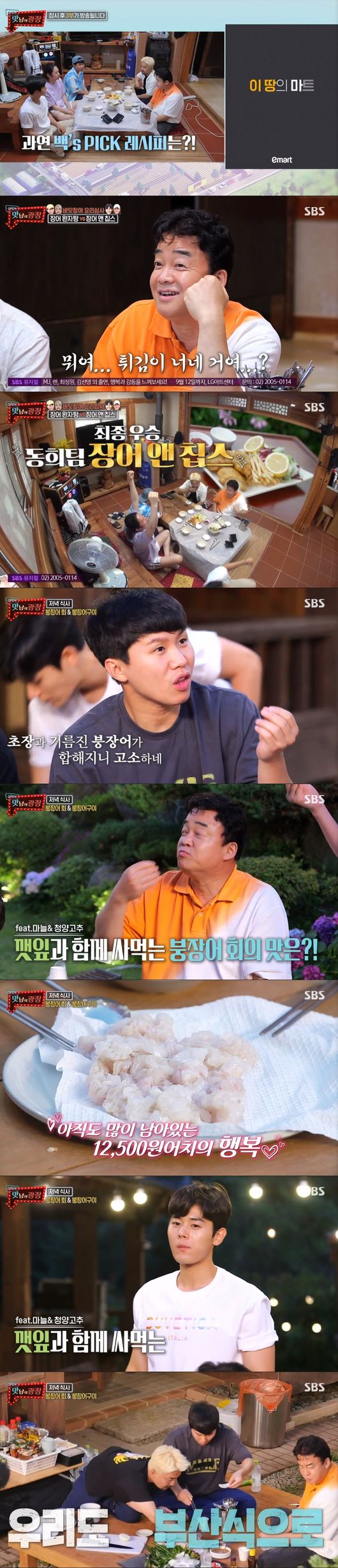 양세형과 유병재도 꿋꿋하게 요리를 시작했다. 붕장어를 연구한 만큼 에이스 양세형 주도하에 안정적인 요리를 진행, 이와 달리 김희철과 김동준은 튀김 기름까지 불 조절을 못 해 좌절하고 말았다.